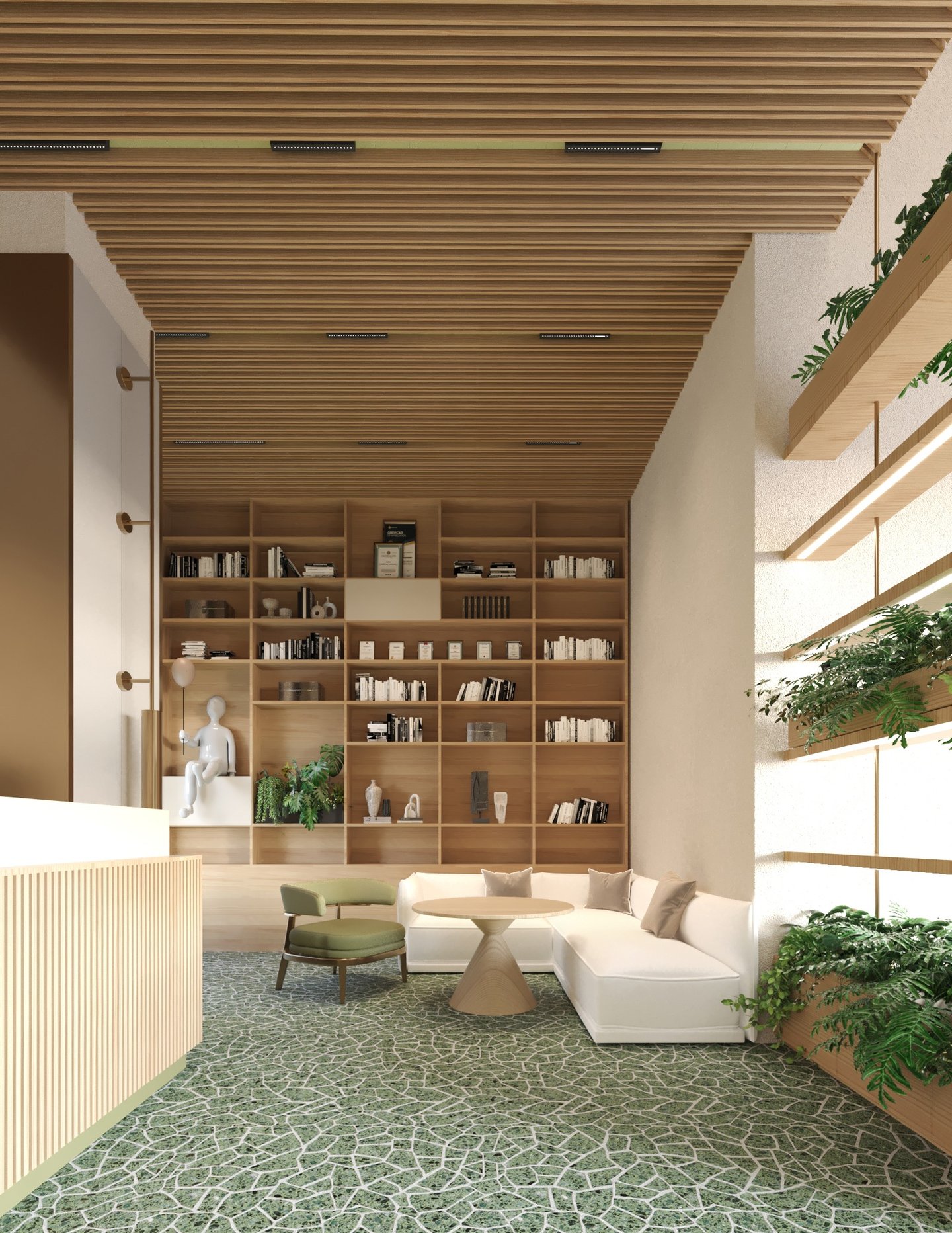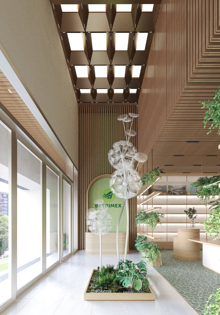 Greenery Office là dự án thiết kế nội thất văn phòng do CAO Atelier thực hiện, phản ánh tinh thần của Công ty Cổ phần Xuất Nhập Khẩu Bến Tre (Betrimex)—một doanh nghiệp hàng đầu trong lĩnh vực sản xuất và xuất khẩu các sản phẩm từ dừa tại Việt Nam.