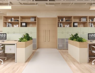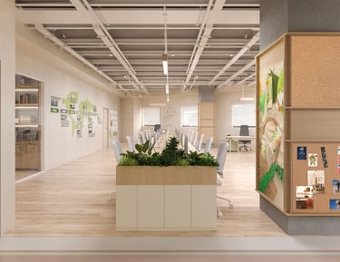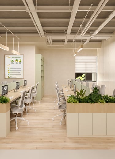 Không gian xanh: Việc bố trí cây xanh trong văn phòng không chỉ cải thiện chất lượng không khí mà còn tạo môi trường làm việc trong lành, gần gũi với thiên nhiên.