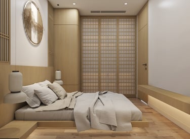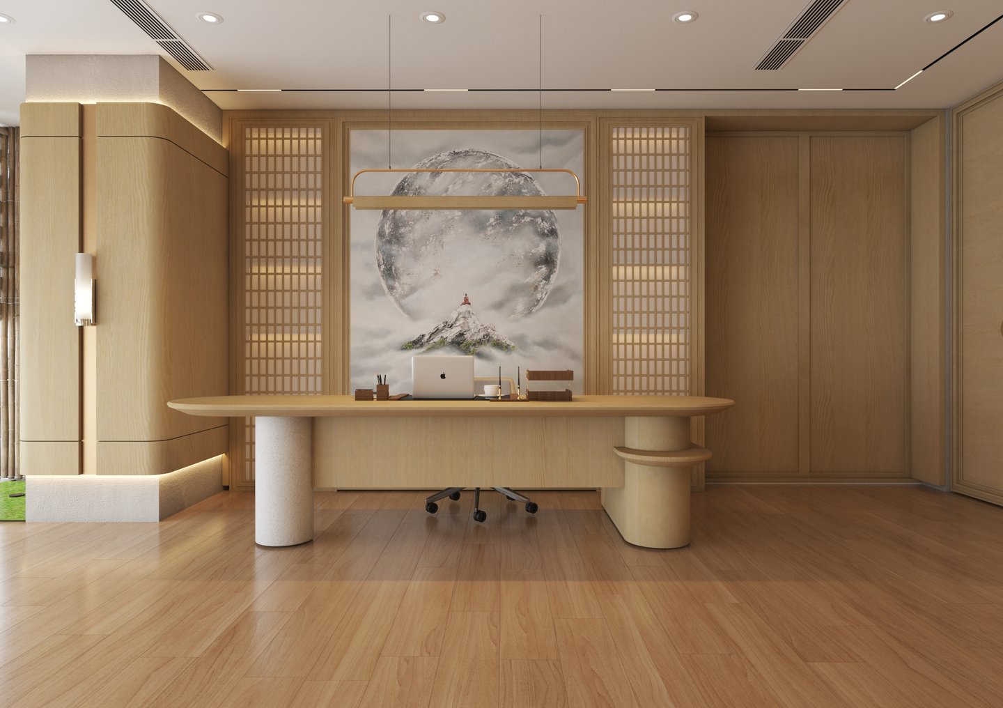Zen Office do CAO Atelier thiết kế là sự tổng hòa giữa phong cách Japandi – giao thoa giữa Nhật Bản (Zen, Wabi-Sabi) và Bắc Âu (Scandinavian, tối giản, tiện nghi). Phòng làm việc mang đến sự tĩnh lặng và tập trung tối đa, giúp cân bằng tinh thần trong môi trường làm việc hiện đại.
